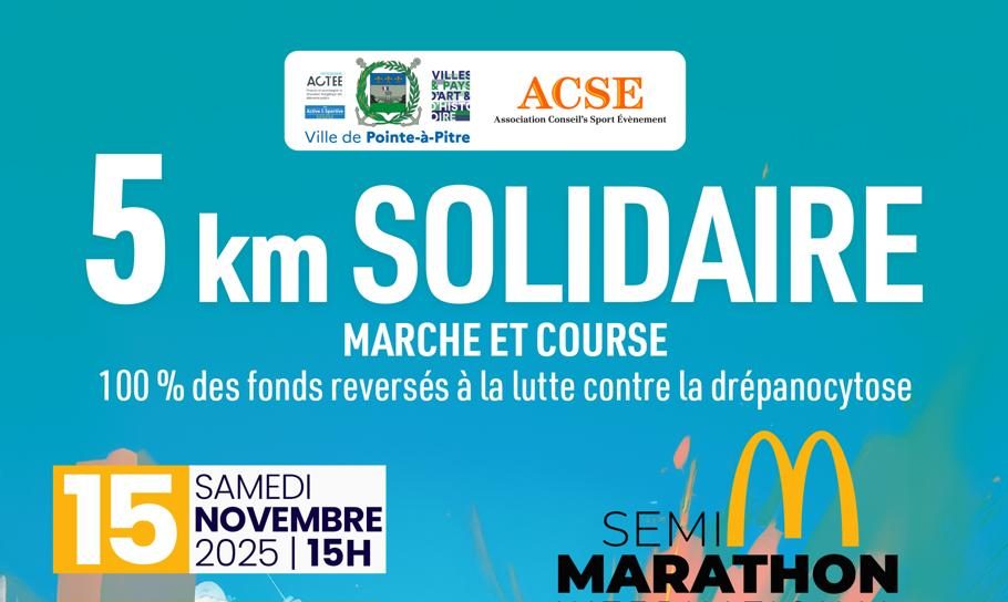 Mis en avantPointe a Pitre Bld de l'amitié et des peuples de la caraibes, pointe a pitre, GuadeloupeLe 5 km Solidaire de Pointe-à-Pitre revient le 15 novembre 2025 !