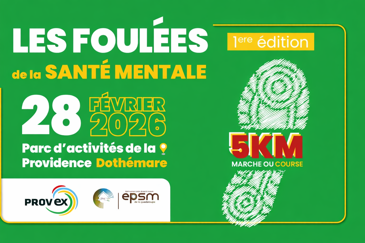 Mis en avantCGSS ZAC de Dothémare, Les abymesLes Foulées de la Santé Mentale, un 5 km marche ou course ouvert à tous, le 28 février 2026 au Parc d’activités de la Providence Dothémare en Guadeloupe.